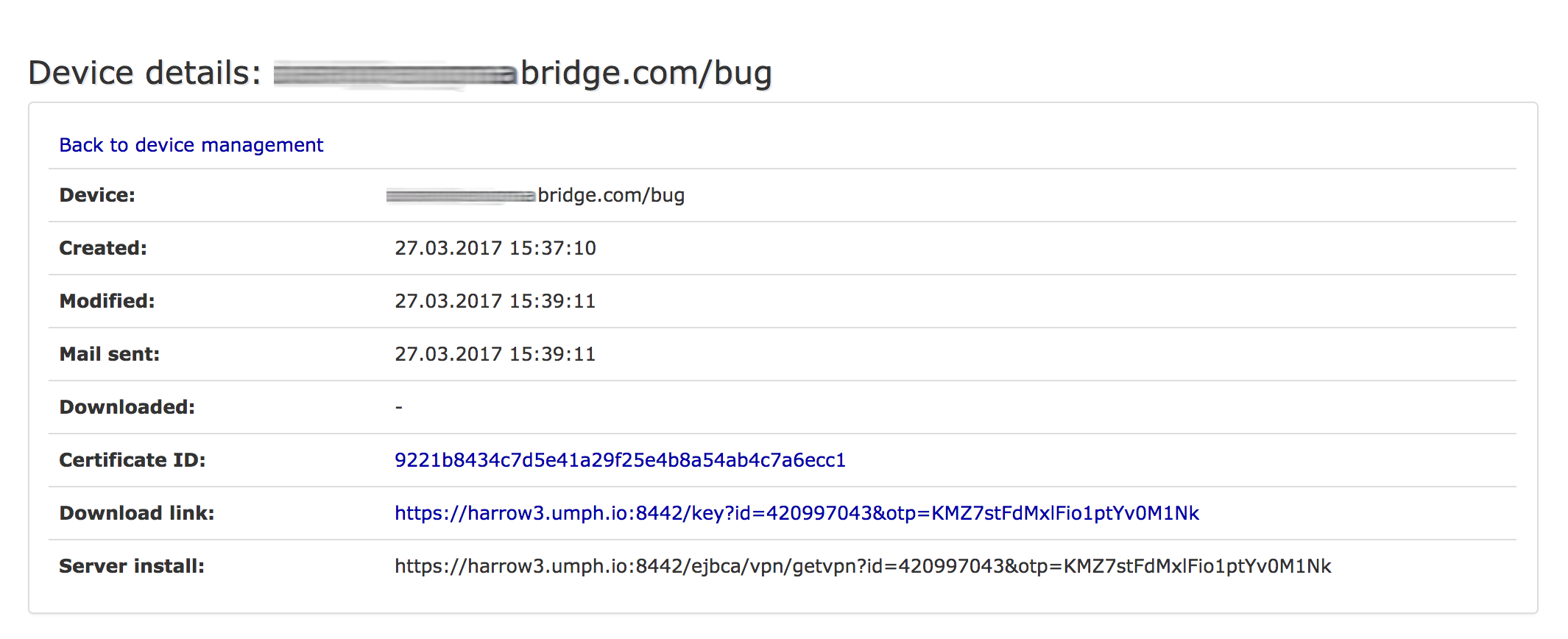 - once on the device detail page, copy the "Server install" link.